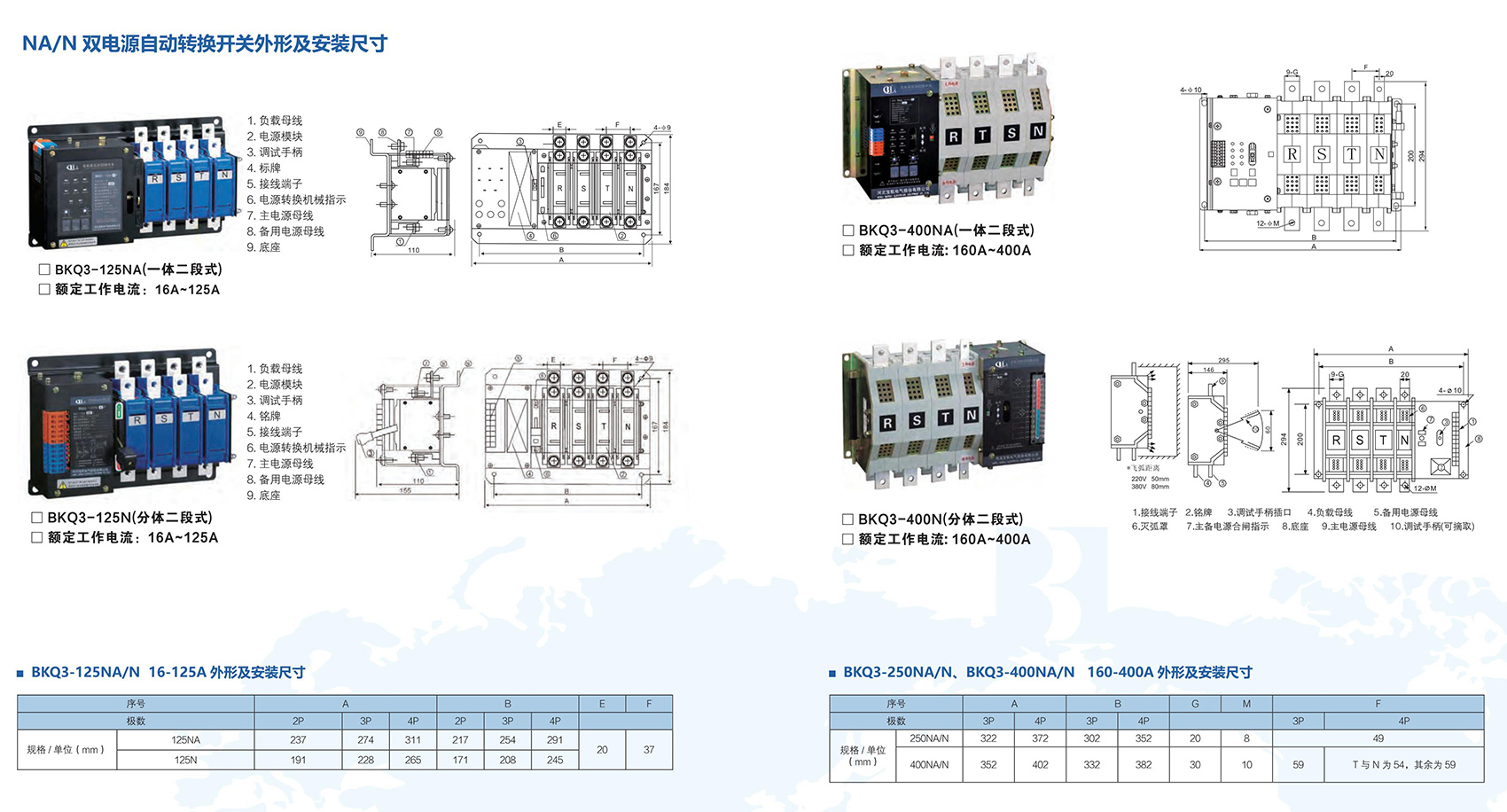 BKQ3-3200Q系列自动转换开关电器适用于交流50/60Hz,额定工作电压400V,额定电流800A至3200A的双路配电系统中,产品由开关本体与转换控制器两部分组成,本体采用电磁线圈驱动,转换速度快;转换控制器具有对两路三相电源的过电压、欠电压、缺相等故障检测功能;同时带有发电机组启、停信号输出。主要应用于医院、商场、银行、化工、高层建筑、军事设施、消防等不允许断电的重要场所。产品符合GB/T 14048.11《低压开关设备和控制设备 第 6-1 部分:多功能电器 转换开关电器》。